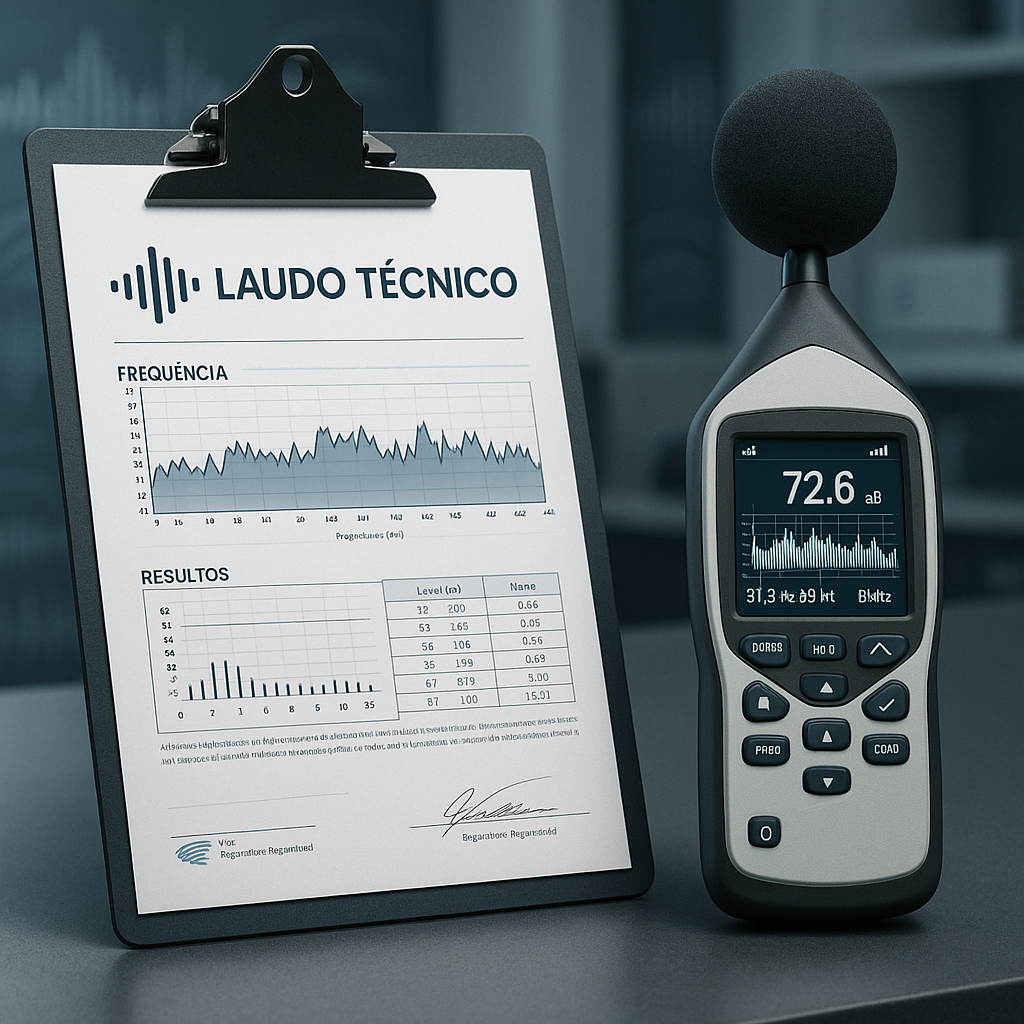 Laudos técnicos de acústica orientam ações preventivas, corretivas e de obtenção de alvará, além de certificações conforme normas como NBR 10.151, NBR 15.575, NBR-ISO 3382 e NR-15.